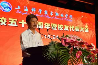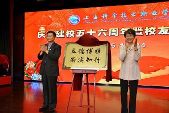 十月的金秋硕果累累,十月的欢歌声声不断。在硕果累累的美好季节里,上海科学技术职业学院迎来了五十六华诞。丹桂飘香迎嘉宾,秋菊溢金慰亲朋。10月24日,学院举行“建校五十六周年暨校友代表大会”。学院校友会名誉会长、原嘉定区副区长周丽玲,学院董事长朱建新,党委书记、院长庄顺根,副董事长袁晓军以及学院党政领导,第一届校友会会长、学院前院长阚敏,第一届校友会理事、广大校友和全体教职员工欢聚一堂,畅叙横跨半个世纪的往事,共襄母校未来发展大计。