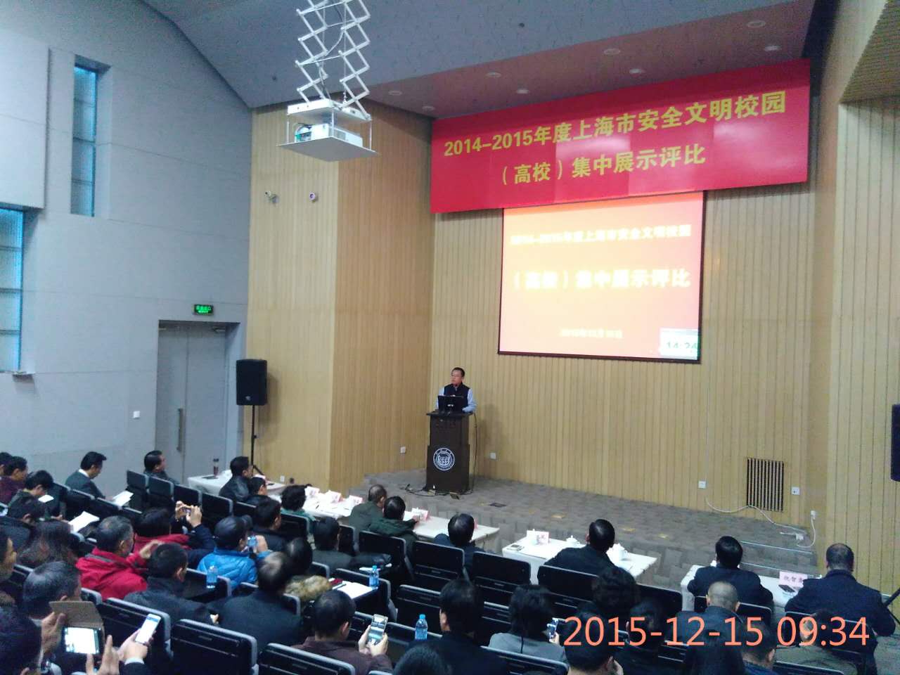 12月15日市教委在同济大学会议中心举行“2014—2015年度上海市安全文明校园”集中展示,市教委后勤保卫处王立慷处长、张旭副处长及全市高校后勤保卫系统共有100多人参加此次评比。