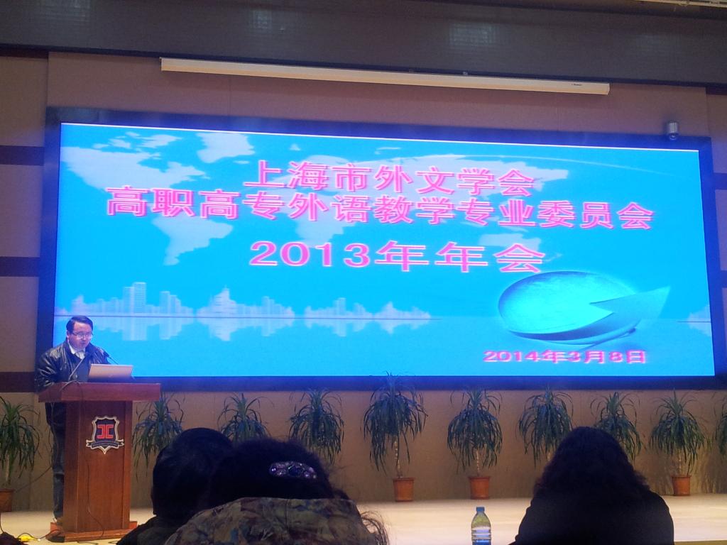 2014年3月8日下午,上海市高职高专外语教学专业委员会2013年年会在上海工商外国语学校举行。与会人员主要有上海市高职高专外语教指委负责人,上海市35所高职高专院校外语类系主任、专业主任以及复旦大学出版社、上海外语教育出版社等负责人。我院彭典贵和顾颖两位老师出席此次会议。