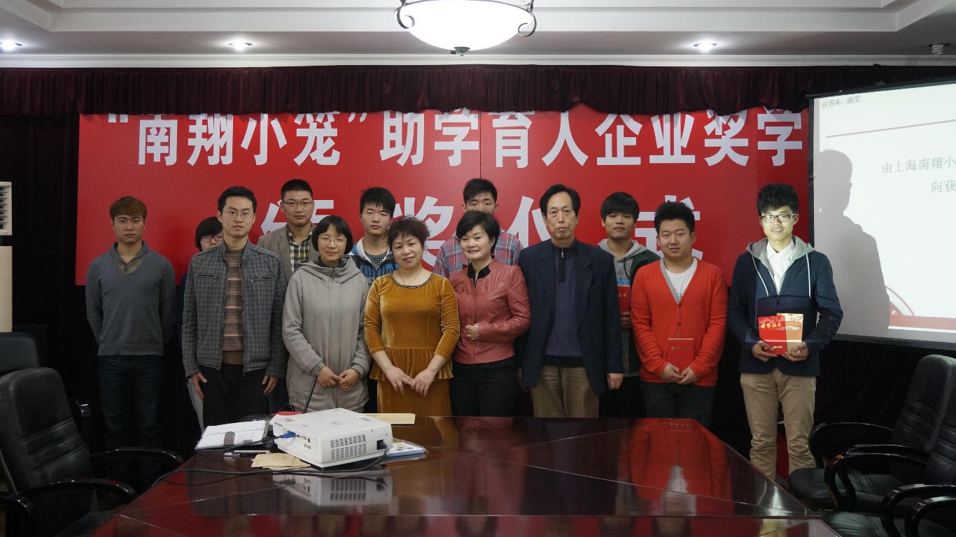 2014年3月18日,学院在第一会议室举办“南翔小笼”助学育人企业奖学金颁奖仪式,颁奖仪式由学生处主办,学生资助中心副主任孙子屏主持,学生处处长吴育红、南翔小笼企业方代表朱丽娟女士、各系获奖学生及学生代表出席。