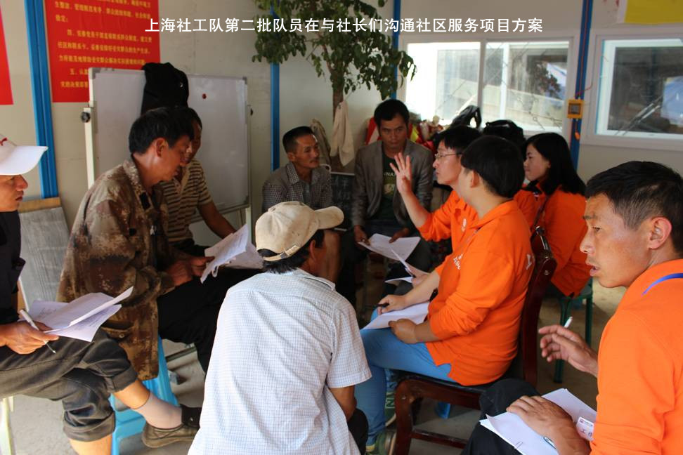 上海社工服务队第二批队员到达云南鲁甸灰街子安置点,与第一批队员完成了交接。队员将基于安置点需求开展了一系列有特色的社工服务项目,并以疏解安置点具体问题为载体,协助当地进行团队建设,真正做到助人自助。队员拟定了“灰街子安置点增能方案”,希望通过与当地党小组与受灾群众共同合作,开展一系列符合群众需求的社区服务项目,协助当地群众解决实际问题,同时构建一支当地的骨干队伍,提高安置点社区的自我管理与服务能力。