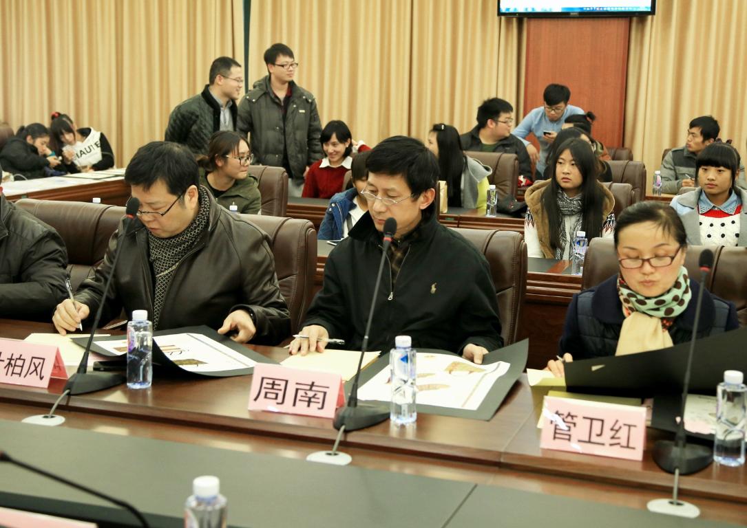 2014年12月9日,室外寒风料峭,室内暖意融融、激情澎湃,“首届创新草编和竹刻设计大赛”决赛暨颁奖盛典在学院第二会议室进行,上海工艺美院和我院艺术设计专业共80余幅作品参加了决赛。嘉定区残联管卫红副理事长,阳光工坊周云珠、周佳艺等嘉宾,上海工艺美院师生,我院党委书记、院长庄顺根,教育督导室主任朱敬德,人文系主任彭典贵和书记沈斌带领艺术设计专业师生,共八十余人参加了颁奖盛典,人文系主任彭典贵主持颁奖典礼,党委书记、院长庄顺根发表了热情洋溢的欢迎词,“嘉定报”记者李华成对决赛和颁奖活动进行了全程采访。本次大赛特别邀请了上海工艺美术学会副会长、秘书长、《上海工艺美术》杂志主编周南等8名行业专家作和教授作为评委。