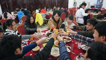 2015年2月16日晚,学院资助管理中心、学生处在学院一楼食堂组织开展了“2015年留校学生年夜饭”活动,与假期留校的同学们共同迎接新春的到来。学院党委副书记周财宝,学生处处长吴育红,后勤保卫处处长诸承年,以及学院资助管理中心、学生处等部门均参加了本次活动。