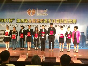 2015年10月17日,由教育部高职高专教育指导委员会举办的 “J.TEST杯”第四届全国高职高专日语技能大赛在美丽的海滨城市-青岛落下帷幕。来自全国各地的90多名选手相聚青岛,共同参与、经历、享受了此次盛会。我院人文与社会科学系应用日语专业推选了两名个人赛选手以及一支团体赛队参加了本次比赛。在这场高水平、竞争激烈的角逐中,我院代表队发扬不畏强手,奋勇拼搏的精神,出色表现,终于不负众望,夺得团体赛二等奖,个人赛二个三等奖,指导教师赵建农老师,周妤帆老师双双荣获团体赛项以及个人赛项的“优秀指导教师奖”。根据竞赛总分排名,我院参赛队同时获得大赛“优秀组织奖”。