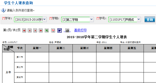 学生个人课表查询