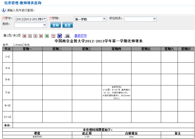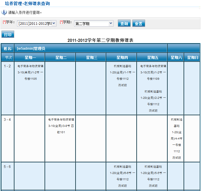 老师个人课表查询