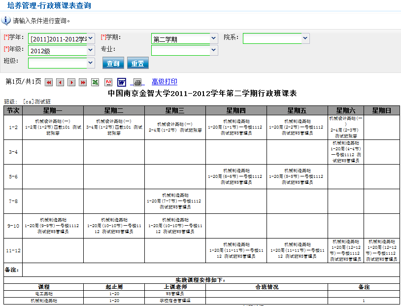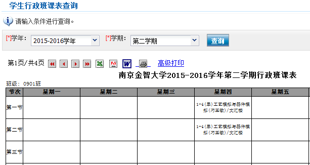 行政班课表查询