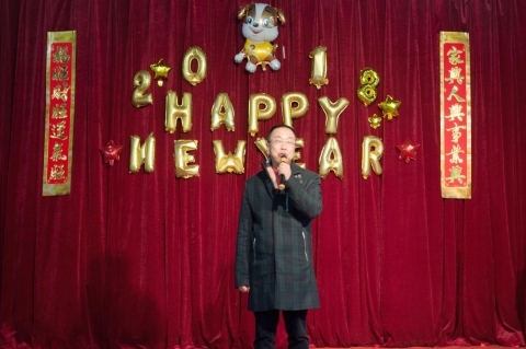 王云飞代表学院致新年贺词,他说,新年是一个万家团圆的时刻,大家因为各种原因不能回家,学院领导非常挂念大家,今天学院领导、老师和同学们一起吃个年夜饭,希望能够让同学们感受到家的温暖。同时他也希望留校学生合理安排自己的学习、工作和生活时间,勤奋努力学习,为2018年开个好头。