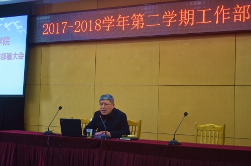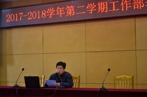 董大奎简要回顾了上学期的工作,指出上学期在全校教职员工的共同努力下,按照董事会的要求我们超预期的完成了计划中的各项工作。本学期就自己分管的工作主要做如下部署:一是抬头看路把握方向。他从十九大报告中关于社会主要矛盾的转变以及对高等教育事业的重要论述谈起,明确提出全院要认真学习习近平总书记的重要讲话,增强责任感、使命感和紧迫感;二是学习文件找准落点。他将《关于全面深化新时代教师队伍建设改革的意见》,《国务院办公厅关于深化产教融合的若干意见》,《职业学校校企合作促进办法》这三个重要文件的基本内容和重要意义做了解读与强调,指出学习好、贯彻好这些文件精神就是我们学院今后改革、建设和发展的落脚点;三是低头拉车稳步推进。他指出我们的高职教育就是要遵循人才培养的内在规律、遵循教育教学规律、遵循人才成长规律,在已有工作取得成绩的基础上,继续推进教学诊断与改进、专业建设与管理、专业人才培养计划、思政课程体系建设以及各项质量提升工程等工作的开展。