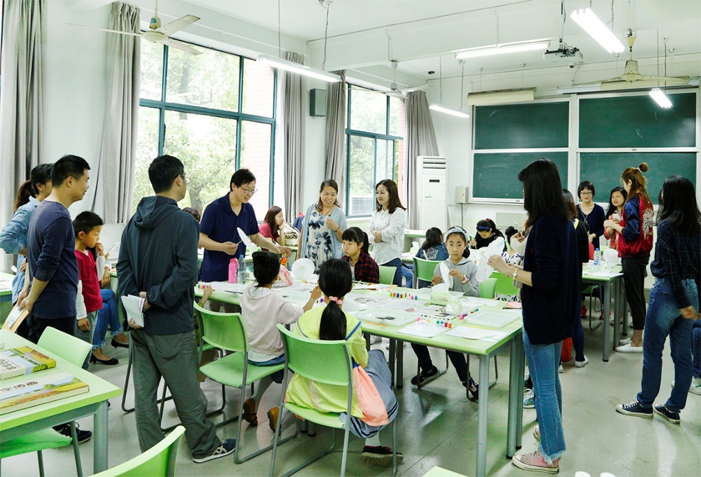 为让不同年龄段的体验者有不一样的收获,指导老师为小学生精心准备了炫彩创意水拓画材料,为中学生准备了数字油画材料。在指导老师和学生志愿者的指导下,用各色颜料滴在特制的画液中,随着颜料不断扩散,小朋友们用画棒画出一幅幅五彩缤纷的图案,当小朋友们掀开拓在小伞、扇面上的鲜艳图案时,现场一片欢呼。小朋友们通过快乐的彩绘体验,发展了创造性思维,培养了敏锐的观察力、独特的想象力和灵活的动手能力。