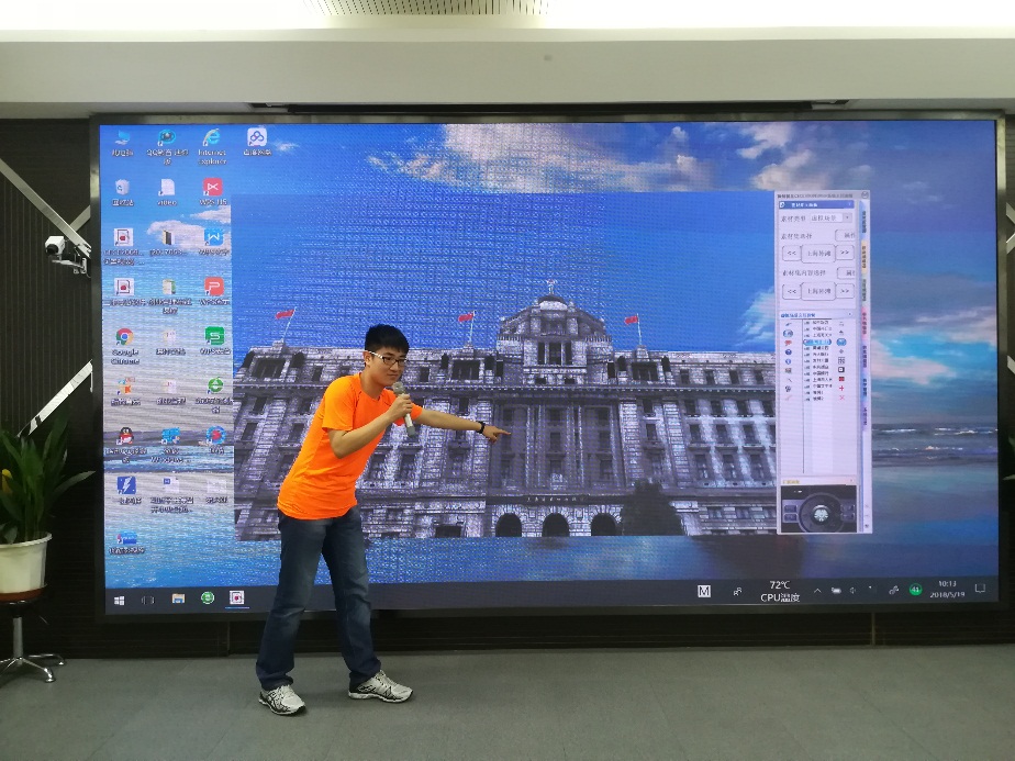模拟导游项目通过三维虚拟仿真景点向体验者们展示了上海乃至全国各主要著名景点。指导老师主要介绍了导游职业的特点和所需的知识、技能,并让学生志愿者当场示范讲解,再由体验者自选景点,给予讲解技巧指导,最后以导游身份现场介绍虚拟仿真景点。