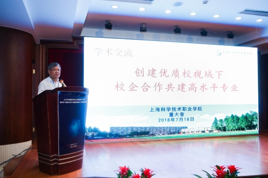 接着,上海科学技术职业学院院长董大奎作了主题演讲,通过“创建优质校视域下校企合作共建高水平专业”这一命题,分析了如何以项目为载体开展产教融合,建设一流专业从而创建世界一流高职院校。