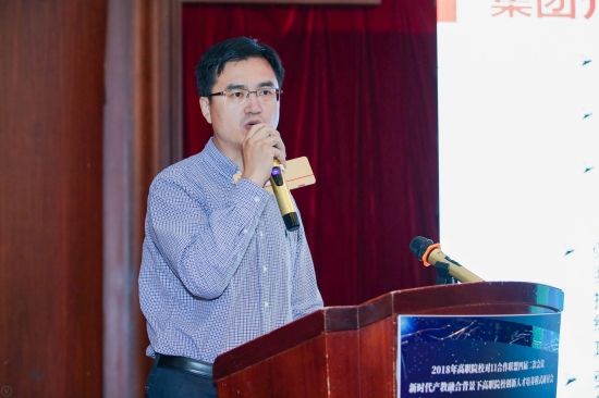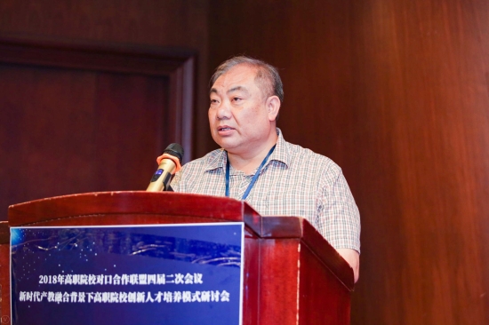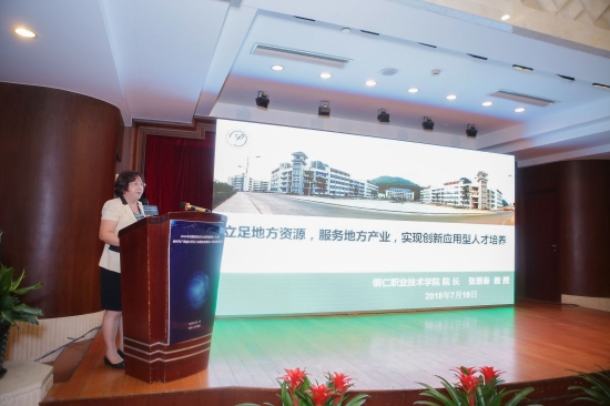 随后,贵州铜仁职业技术学院院长张景春作了“学创融合,实岗育人,助推脱贫"的高职人才培养改革与实践”的主题演讲,展示出铜仁职院在培养应用型人才方面取得的良好经验和丰硕成果。
