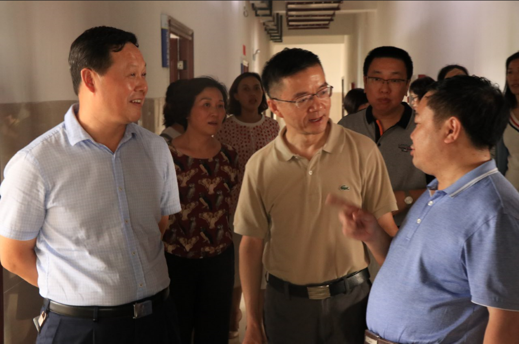 贵州省教育厅副厅长鞠洪(中)与遵义市教育局副局长贺承国(左)
