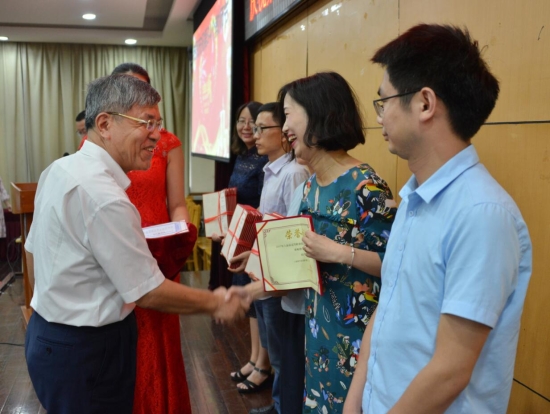 大会首先对许福生、沈丽娟、任小艳、郭威、庞媛、洪波、六位获得第六届“申嘉奖教金”的同志进行了表彰。随后进行的是2017—2018学年其他各类表彰奖励仪式,院长董大奎、党委书记王云飞、副董事长袁晓军、副董事长杜红斌、常务副院长韩芳、副院长周财宝、副院长卓丽环、副院长高康分别为王鹏、胡晓晖等46位同志颁奖,董事长朱建新为杨亚莉、徐华、彭典贵三位从教三十年的教师颁发荣誉证书。