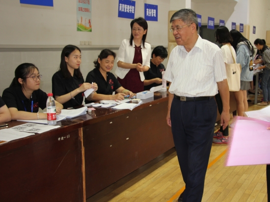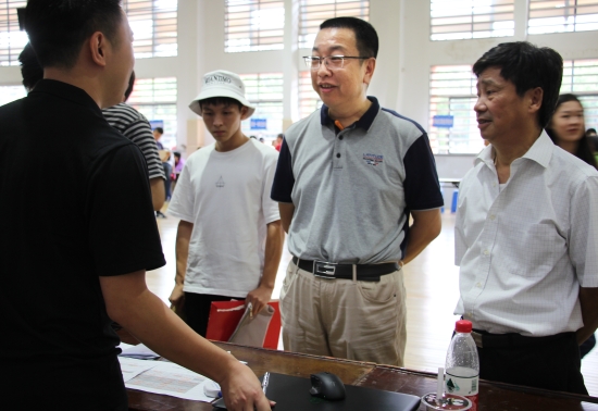 11日上午,院长董大奎和党委书记王云飞先后到迎新现场看望慰问迎新中的师生员工,勉励大家克服困难、精益求精、团结协作,把各项工作做细做实,共同为新生和家长送上科院人的笑脸,提供便捷周到的服务。看到迎新处的大数据平台后,董大奎表示这样的信息化迎新很新颖,很便捷,学院今后应多探索多尝试尤其是收费方式应该更加便利学生。在与新生及家长的交流中,王云飞感谢他们选择科技学院及对学校的信任,询问新生们的入学感受和对大学生活的展望,鼓励新生们尽快熟悉科技学院,适应新环境,以全新的状态迎接未来的学习生活。
