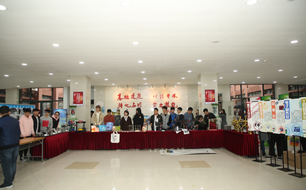 为营造大学生创新创业氛围,展现我校大学生创新创业成果,11月21日,我校团委在新教一楼大厅举行专业社团展示活动,李华老师指导的创艺社、金之杰老师指导的微机维护社、杨春雷老师指导的电子制作社、张东老师指导的工控精英社、张海龙老师指导的车迷俱乐部、冷宇老师指导的机械创新社和叶苗老师指导工艺设计团队等精彩亮相。
