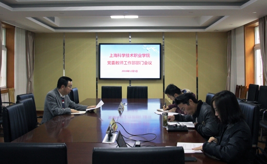 2018年12月5日上午,我院党委教师工作部部门会议在第一会议室召开。本次会议由教师工作部部长王云飞主持,教师工作部副部长徐立新、曾喜平参加会议。