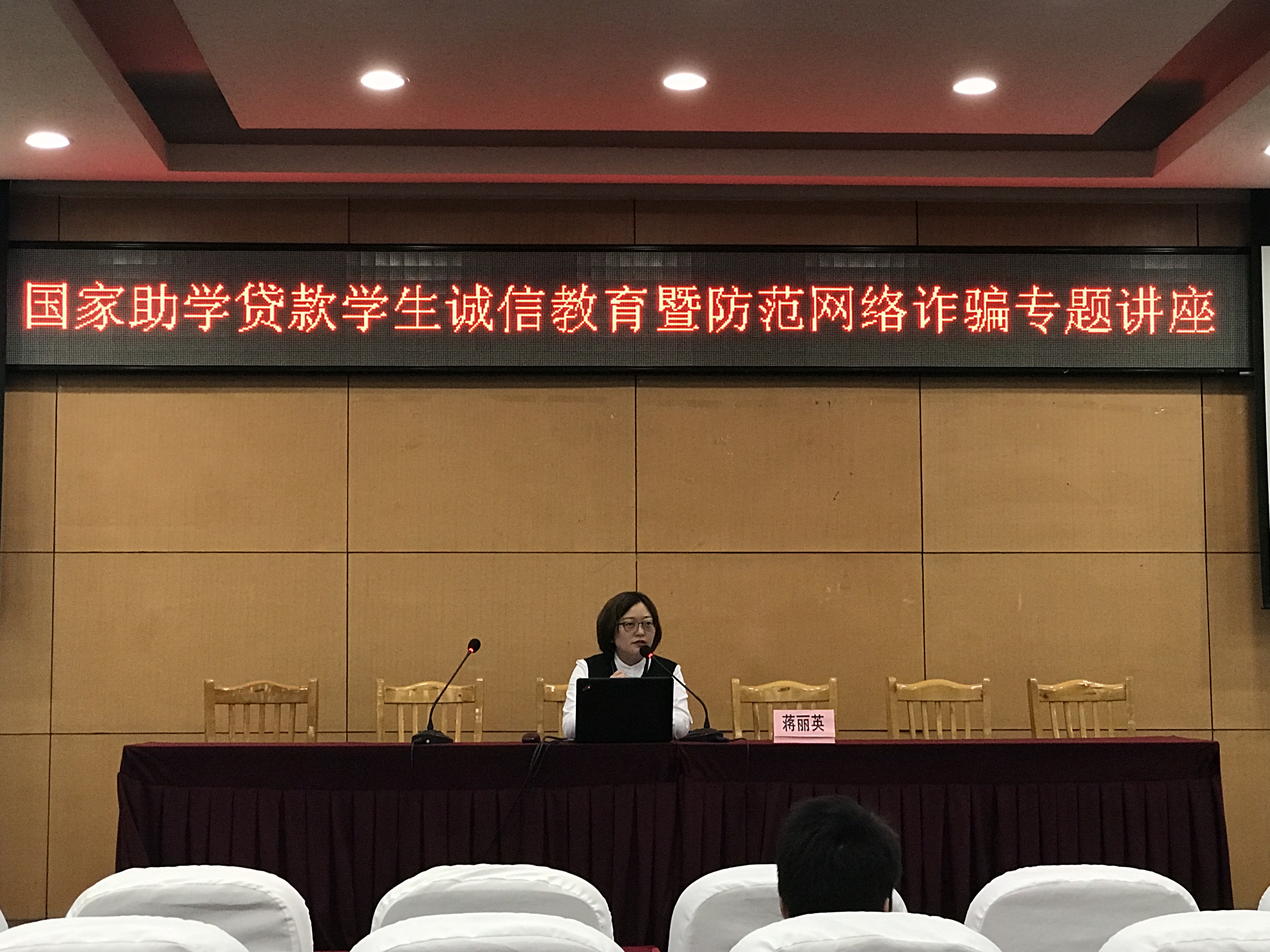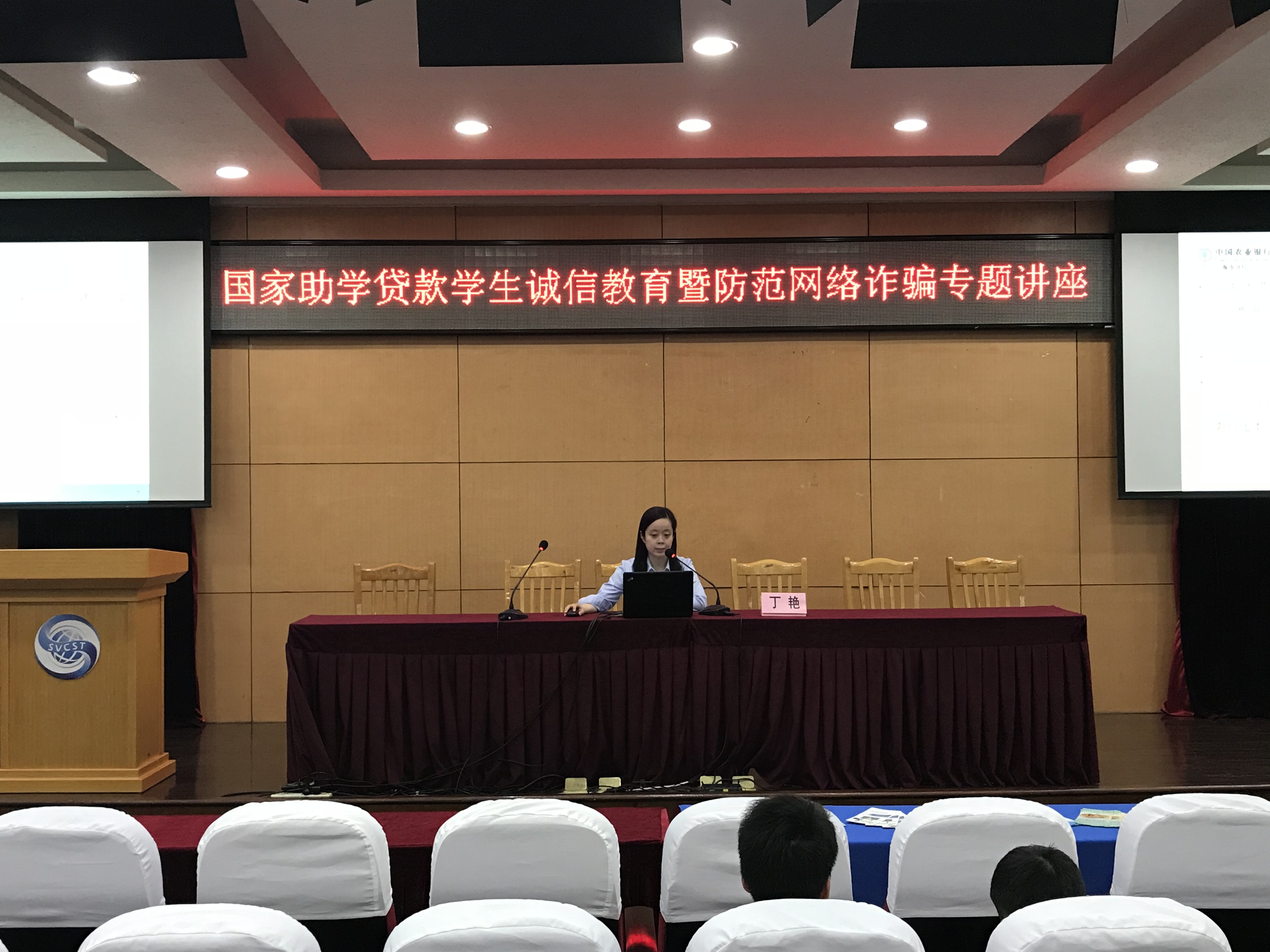 2019年5月22日中午,我院学生资助管理中心、学生工作处于新教五楼报告厅开展“诚信贷款与安全金融”——国家助学贷款学生诚信教育暨防范网络诈骗专题教育活动。