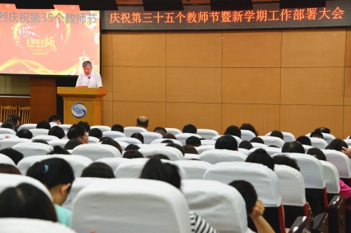 颁奖结束后,院长董大奎对新学期的工作作了部署,他首先代表学院党政班子向辛勤工作在教书育人、管理育人、服务育人所有岗位的教职员工们,致以节日的祝贺和衷心的感谢。接着他指出,新学期,要按照学院下发的学期工作要点,有序推进教学、学工、思政等九方面的常规工作,重点是:一要深入学习、全面贯彻《国家职业教育改革实施方案》,结合学院实际,在重点领域实现突破;二要集全校之力切实组织好、安排好学院成立六十周年各项庆祝活动;三要高度重视、精心准备做好学院领导班子的深入调研工作。此外,他特别强调,稳定是基础、是保障,是学院发展的基石,个人的发展应始终与学院的发展同步、与团队的进步同行;核心竞争力是关键,我们要努力营造学习和探究的氛围、激励改革和创新的实践,奖励服务和贡献的强者,在新的历史时期,不忘初心,牢记使命,为国家和民族培养更多高质量的应用技术型人才。