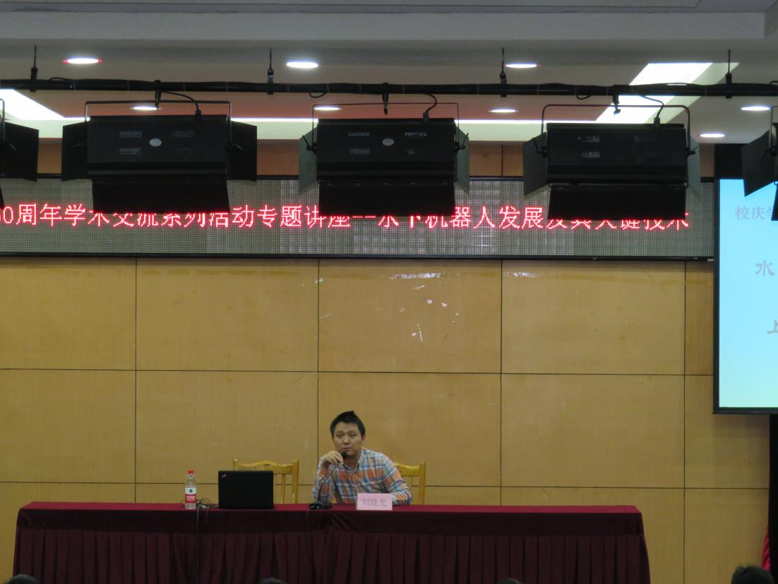 应上海科学技术职业学院科研处、机电工程系联合邀请,上海交通大学刘晓光博士于2019年11月13日来我院开展了主题为“水下机器人发展及关键技术”的专题学术讲座。出席此次讲座的有机电工程系师生近150名听众。讲座由机电工程系机械制造与自动化专业主任夏麟主持主持。