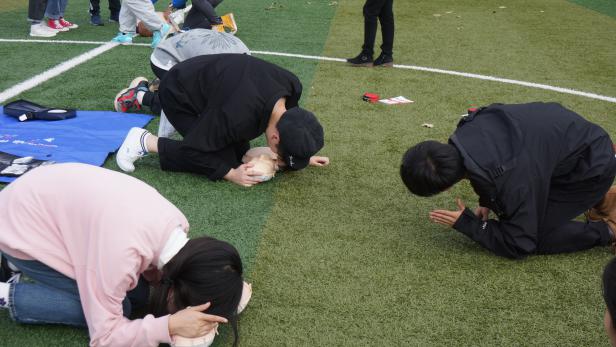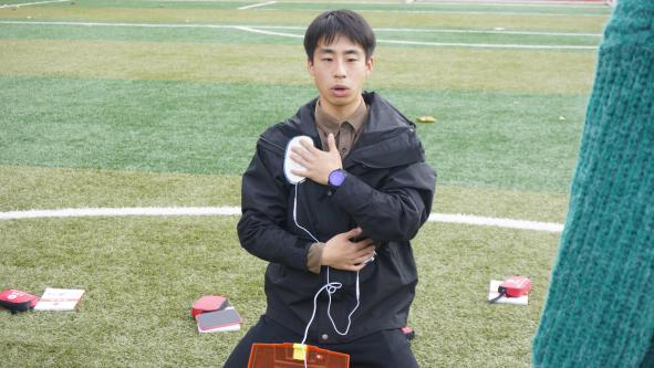 2020年11月11日,学院红十字会和学生会在学院操场开展了急救知识普及活动。活动邀请了我院机电系同学孙正阳(系上海市嘉定区志愿者救援队成员)前来指导和讲解,同时也给大家带来了气道异物梗阻和心肺复苏的应急处理和应对方法。活动目的是为了普及同学们如果遇到此类事件做到不恐慌并妥善处理。