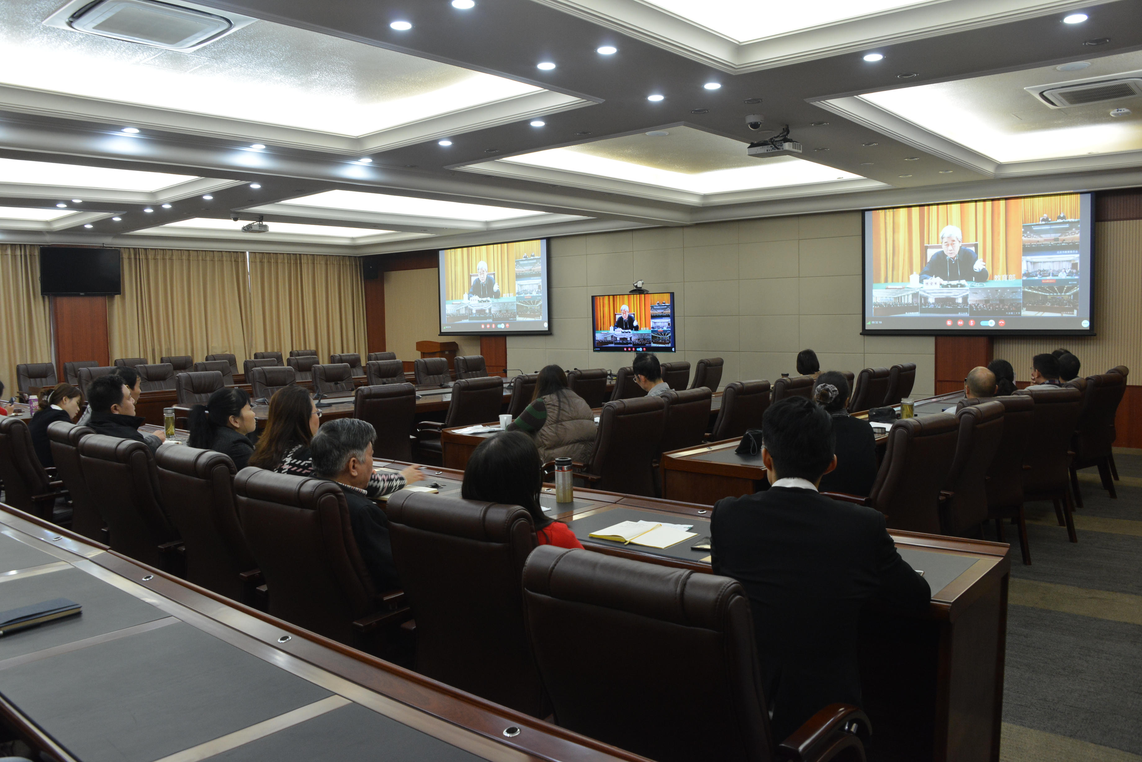 11月17日,学院党政领导、全体中层干部(含助理)、各党支部委员齐聚第二会议室,以视频会议的方式收看了中央宣讲团成员,教育部党组书记、部长陈宝生作的关于学习贯彻党的十九届五中全会会议精神的宣讲报告。