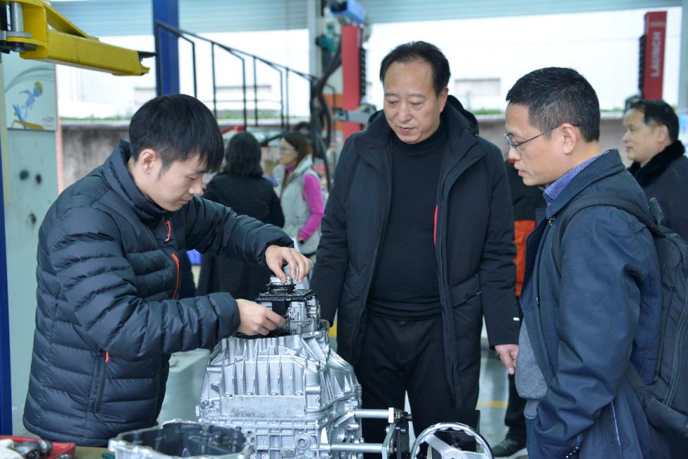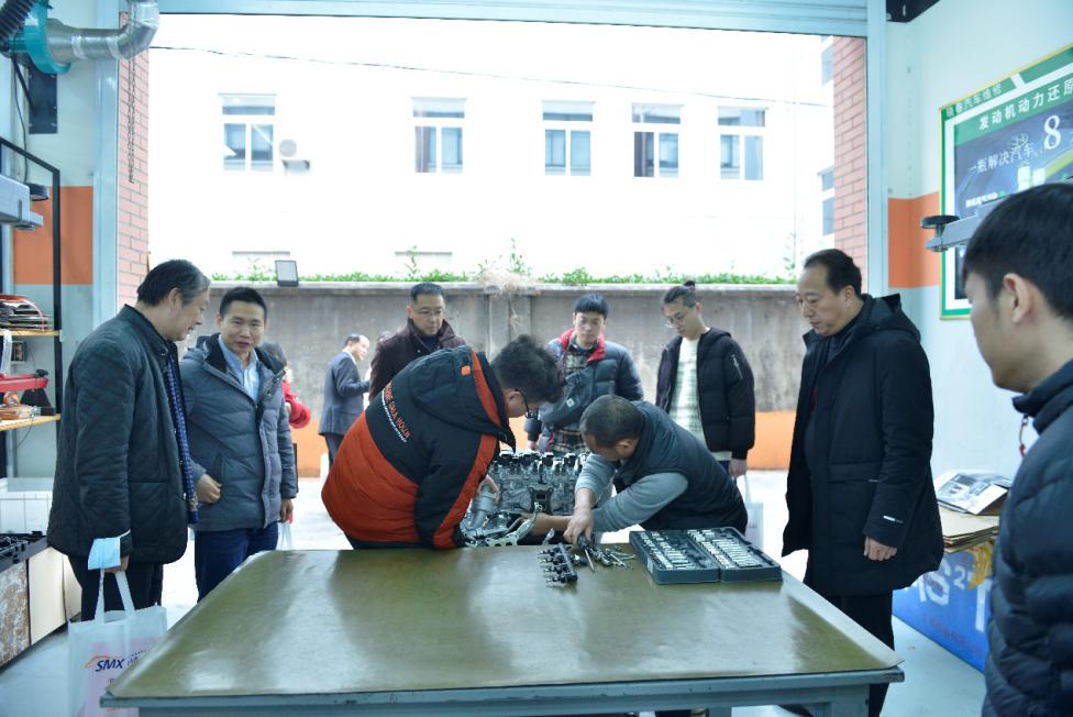 (嘉宾在产教融合示范基地晓春汽修门店进行拆装观摩及技术交流)