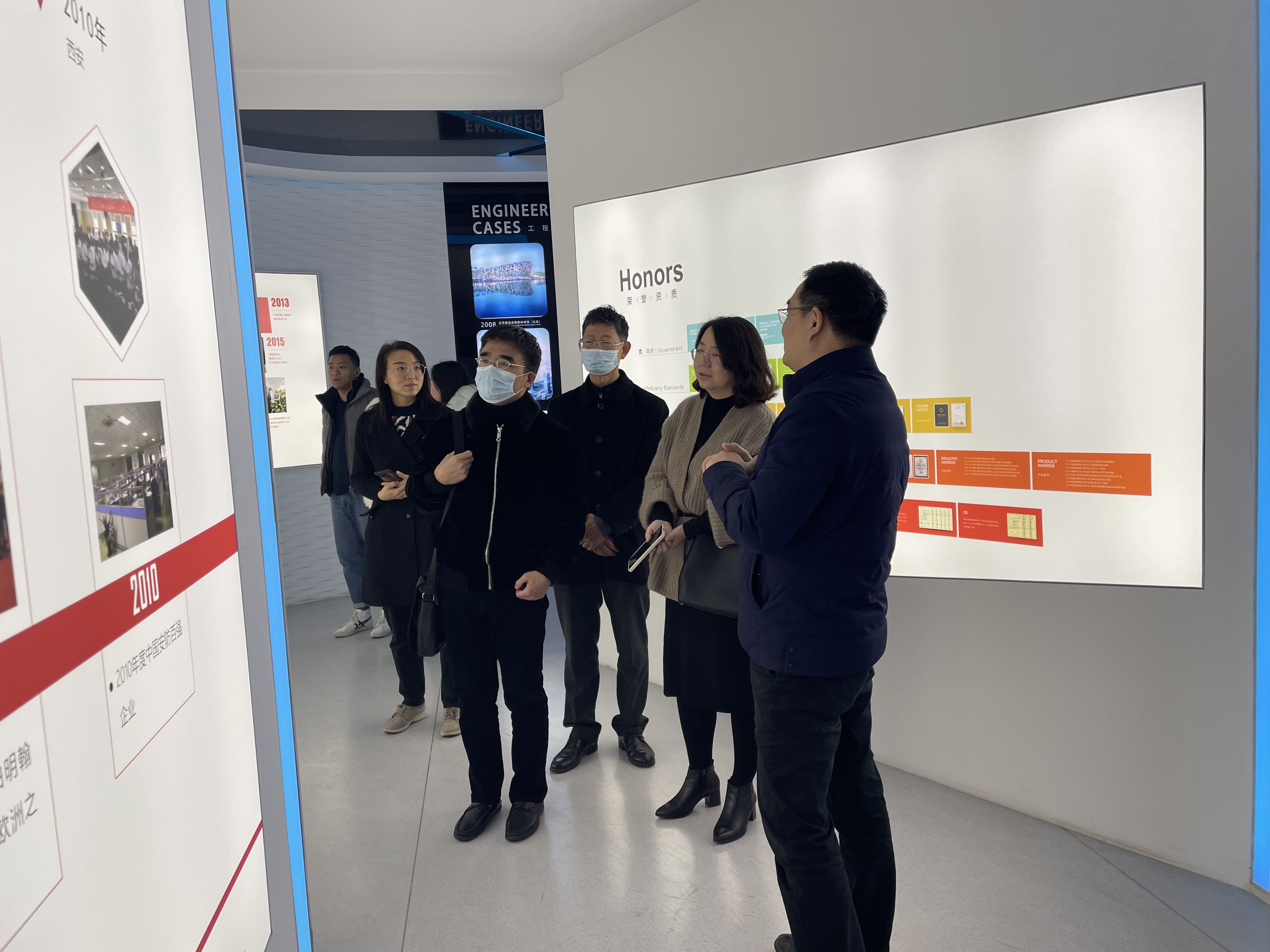 韩芳副校长一行首先参观了爱普华盾展厅,公司产品总监谈毅峰详细介绍了公司的企业文化、涉及领域、主要产品以及先进成果等。