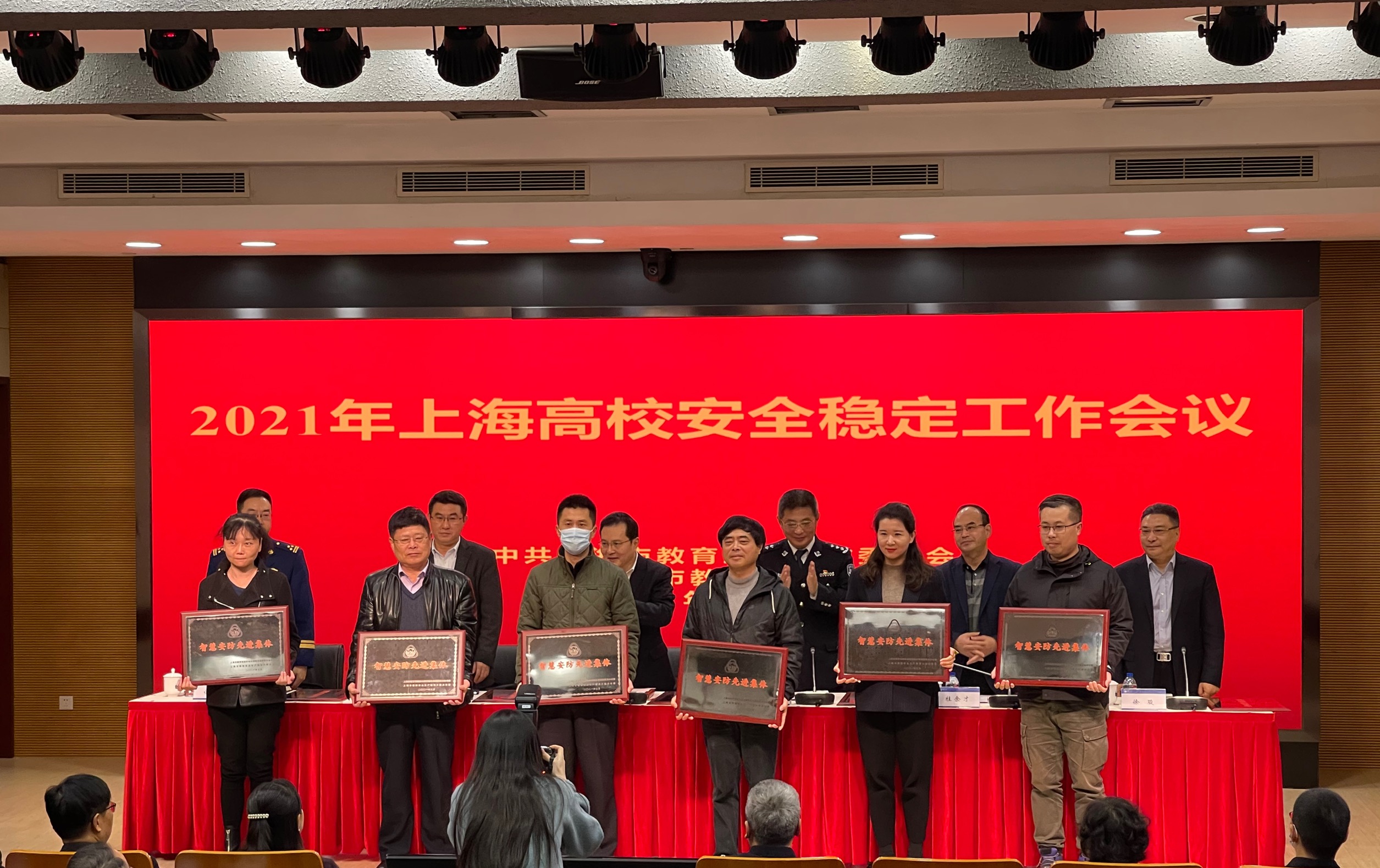 3月18日上午,上海市教委在复旦大学召开2021年上海高校安全稳定工作会议,会上我校荣获上海高校“十三五”智慧安防先进集体和安全教育先进集体两项荣誉,并获颁荣誉奖牌。