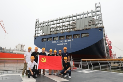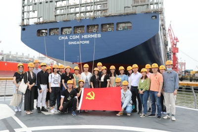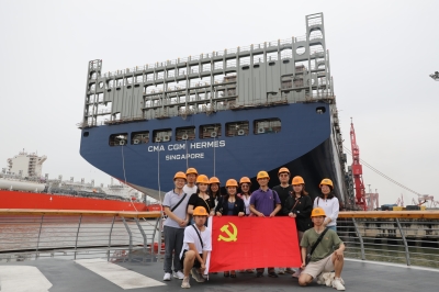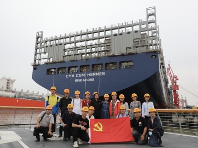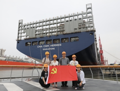 上午9时左右,一行人来到此行第一站——江南造船厂,走进厂区,高高的龙门吊上镌刻着“江南长兴”四个大字直接映入眼帘。一百多年来,江南造船厂饱史沧桑、经久不衰,创造了无数个中国第一,为中国军工、航天事业都作出了突出贡献。作为“中国第一厂”的江南造船厂于危机中育新机,于变局中开新局,其150多年的发展变迁史正是我国近代民族工业不断发展壮大的缩影,是中华民族精神百折不挠、自立自强的写照,是我们党员学习教育的生动案例。怀着诚挚敬意,全校党员佩戴党徽,在看舰码头庄重合影,党旗飘扬在风中,党徽闪耀在胸前,初心使命在心中,大家再次坚定为中华民族伟大复兴而不懈奋斗的理想信念。