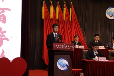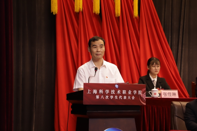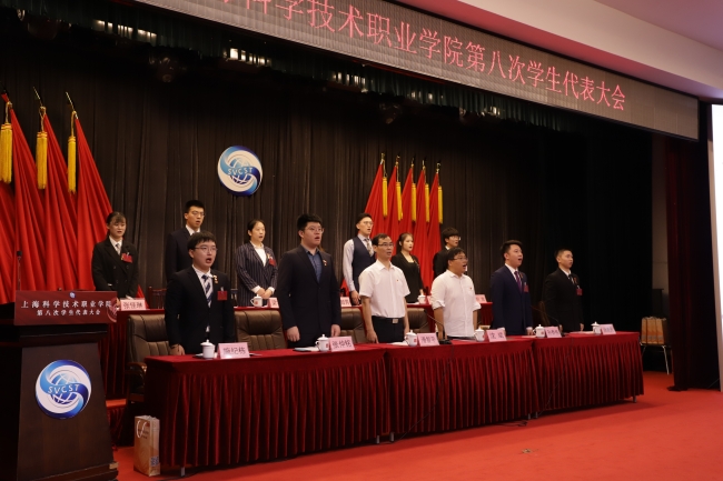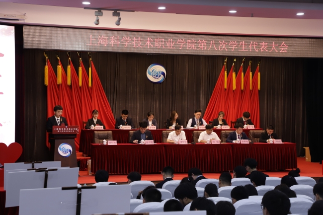 2021年6月18日上午9:00,在热烈庆祝中国共产党百年华诞的浓烈氛围中,上海科学技术职业学院第八次学生代表大会在我校三楼报告厅顺利召开。学校党委副书记、副校长滑智平、学生工作处处长沈斌、团委书记张仲铭、各院系团委(团总支)书记,兄弟院校学生会代表、学生会主席团、第八届学生会主席团候选人以及161名代表参加了会议。大会由校团委副书记、学生会秘书长孙泰伟主持。
