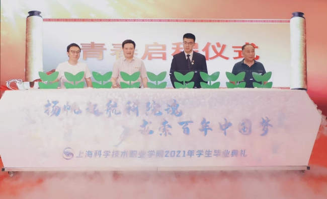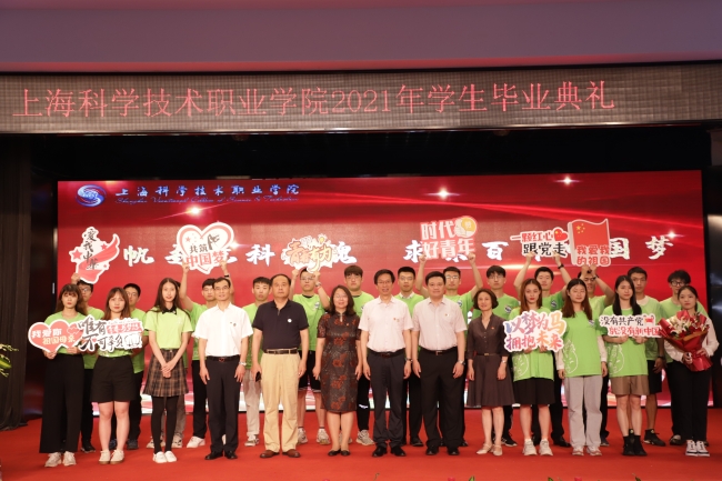 6月24日,上海科学技术职业学院2021年学生毕业典礼在学校三楼报告厅举行,学院校长周胜、党委书记程军、常务副校长韩芳、副校长高康、胡晓晖,党委副书记、副校长滑智平,各院(系、部)、各职能处室负责人、部分教师和毕业生代表参加。