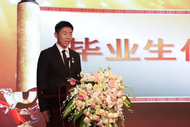 随后,上海市优秀毕业生、商务管理专业吴凡同学作为代表发言,呼吁全体毕业生做拥有智慧并富有激情的人、胸怀大志并脚踏实地的人、德才兼备并勇于创新的人、富有责任并敢挑重担的人!