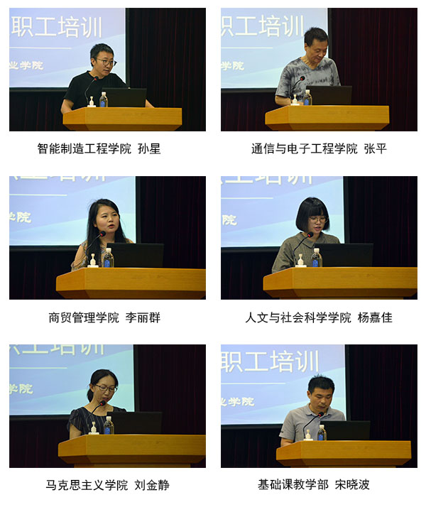 讨论交流环节中,专任教师队伍分成六个小组,各组在学院领导的带领下,围绕学科建设、学生培养、课程改革和讲座内容展开热烈讨论。各学院分别派出教师代表作交流发言。中层干部队伍分成五个小组,在各组组长的带领下,围绕培训相关内容畅所欲言,为学校的改革与发展建言献策,各组组长分别代表小组作交流发言。