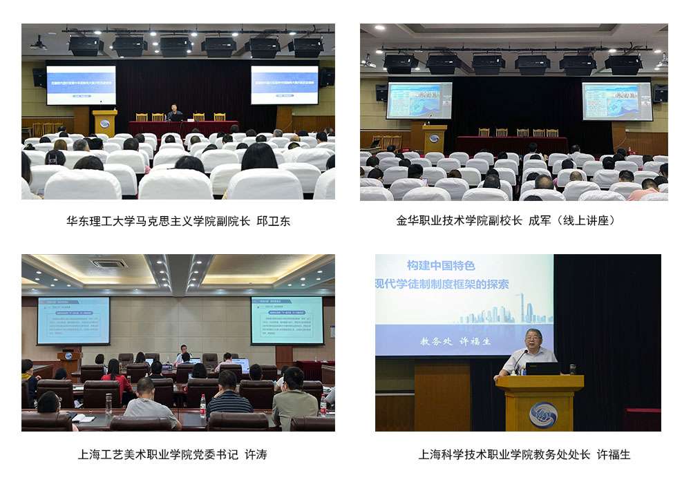 学校领导对此次培训高度重视,常务副校长韩芳为全体教职工做题为《上海市高水平高等职业院校建设方案》的报告,分别从“双高”建设的方案背景、总体要求、建设任务、建设进度、预期成效、保障措施共六个方面展开分析。并邀请华东理工大学、马克思主义学院副院长邱卫东教授,金华职业技术学院副校长成军,为全体教职工分别作了《在新时代践行实现中华民族伟大复兴的历史使命》《高职院校高水平专业(群)建设的教学创新载体的设计》的专题辅导报告。在中层干部培训环节,邀请到上海工艺美术职业学院党委书记许涛,作了《专业化、规范化—高职院校中层干部队伍建设》的专题报告。另外,我校教务处处长许福生为专任教师带来《构建中国特色现代学徒制制度框架的探索》的专题报告。