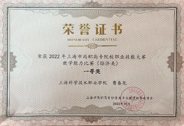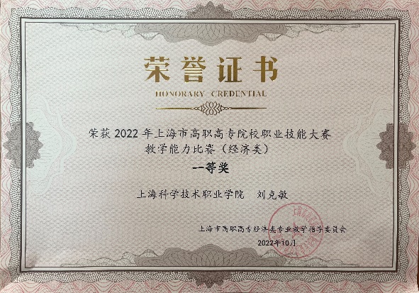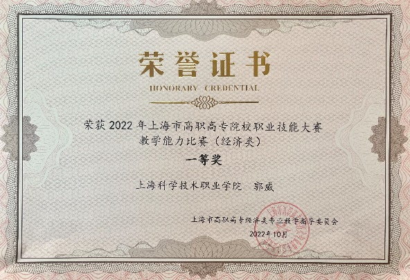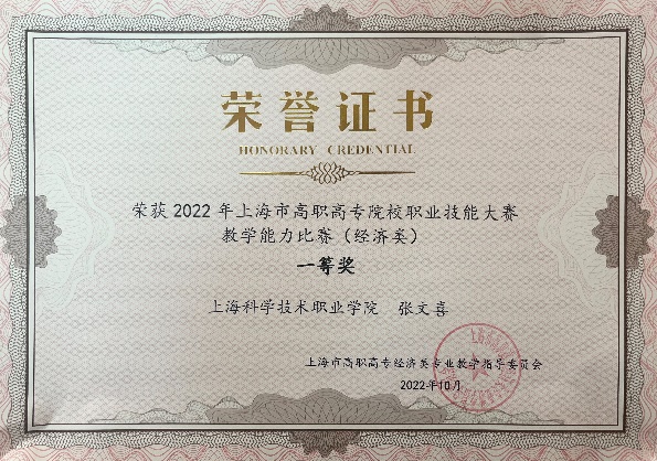 据了解,该比赛由上海市经济类教学指导委员会主办,是展示上海市经济类职业院校教学能力水平的主要舞台,是推动三教改革的重要抓手。经网络初评和决赛评审,共产生一等奖3个,二等奖5个,三等奖8个,该项比赛的前三名可获得教学能力比赛的市赛资格。