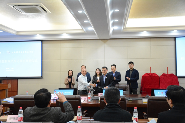 10月21日下午,我校举行与上海蔚来汽车有限公司签署校企合作框架协议暨蔚来汽车人才储备班开班仪式。常务副院长韩芳,副院长高康、胡晓晖,校企合作办公室主任张华,科技处处长彭典贵,招就处处长唐晓艳,教务处处长许福生,智能制造工程学院党总支书记陈飞、副院长张东、吴杏,上海国际汽车城集团副总经理徐华,上海蔚来汽车有限公司公共事务高级总监汤国栋、试验中心&售后质量部负责人刘海松、工业化人才招募团队负责人朱凌婕以及我校智能制造工程学院全体教职员工及相关职能处室,蔚来汽车相关部分负责人等参加,活动由智能制造工程学院副院长吴主持。