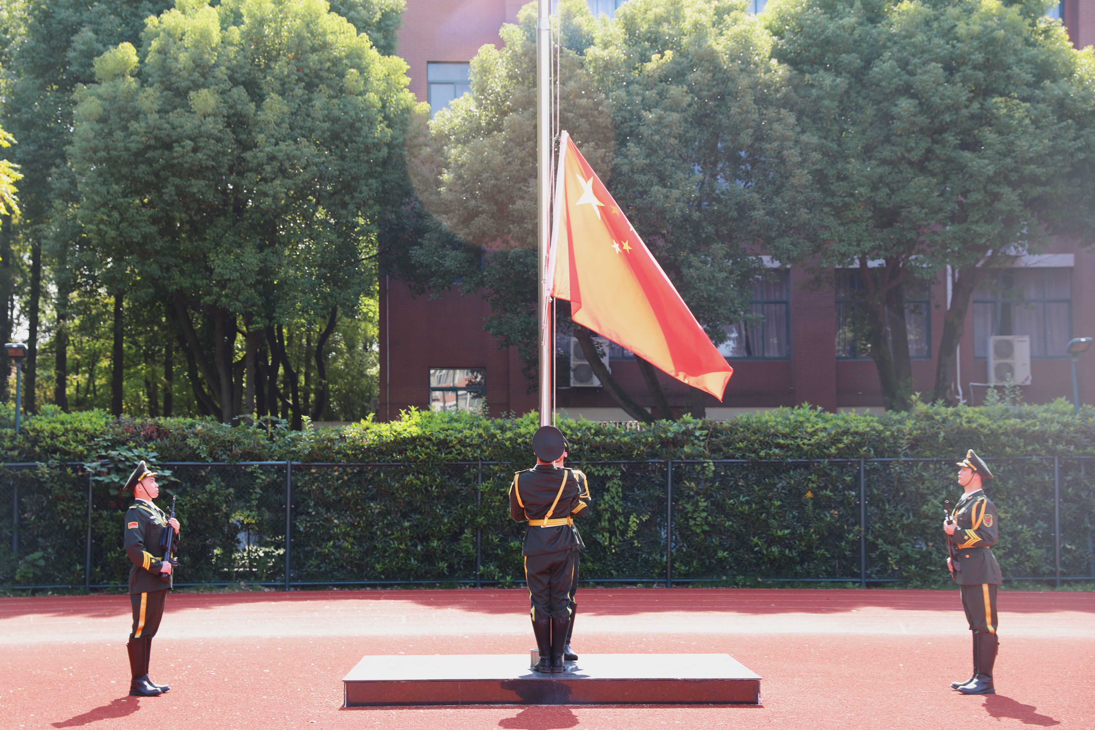 目光如炬,飒爽英姿,在雄壮的国歌声和庄严的升旗仪式中开学典礼拉开了序幕。
