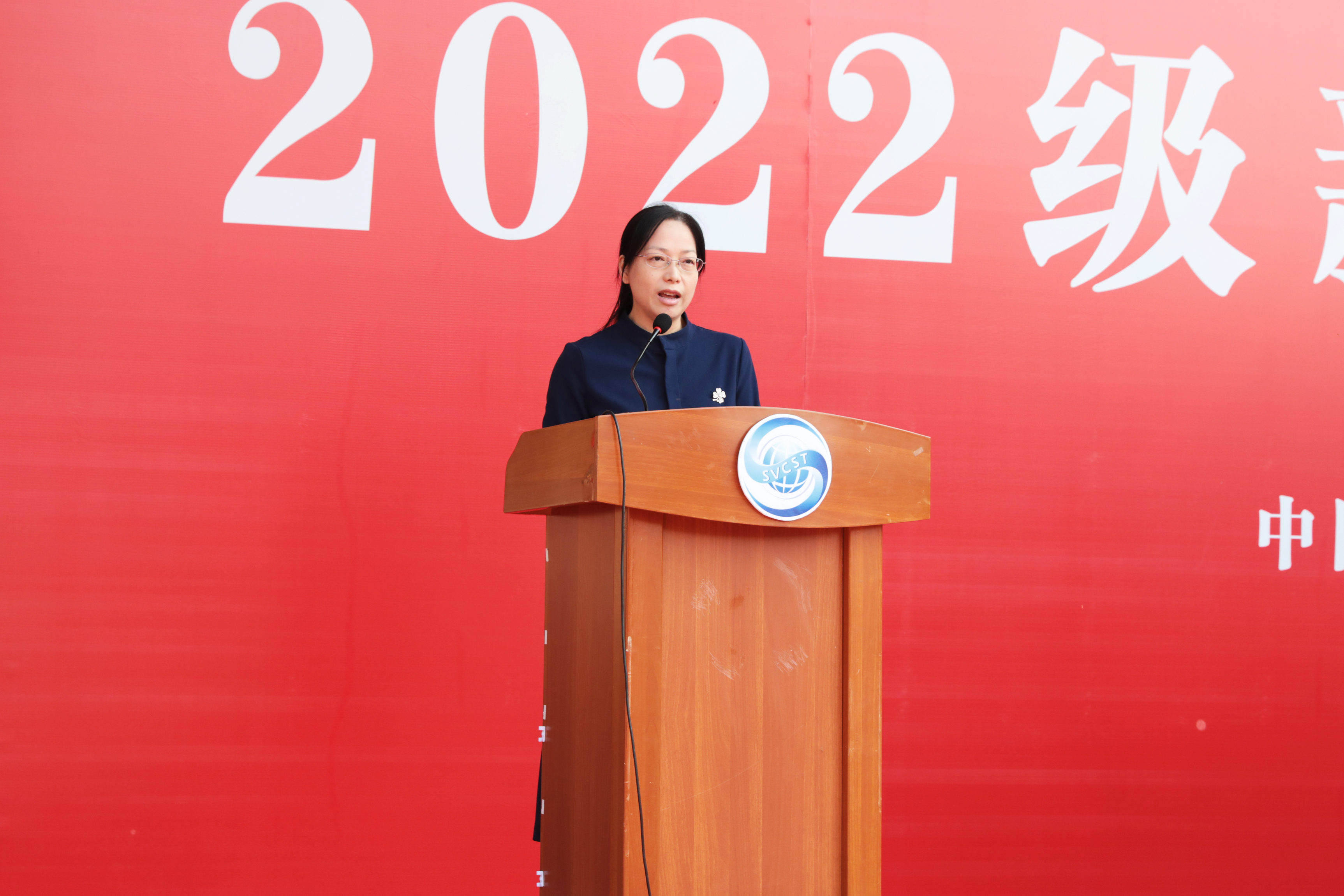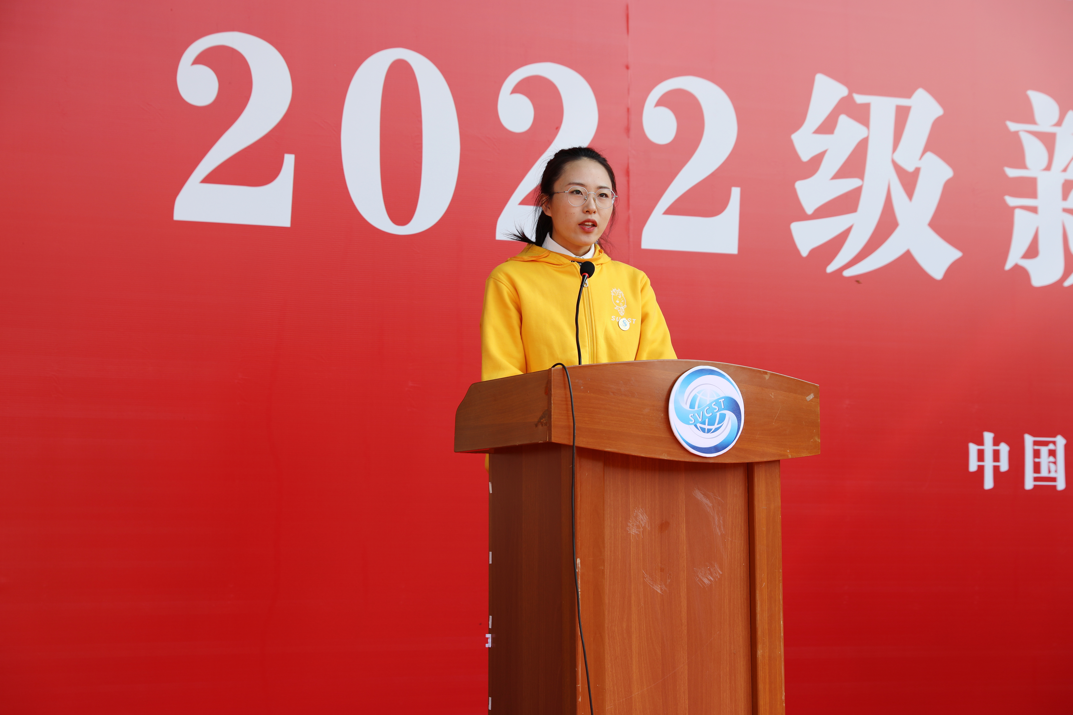 2022级学生代表人文与社会科学学院王慧玲同学,在发言中表示:从我们迈入上科院,成为上科院学子的那一刻起,就要展现出该有的精气神。我们要以拓展边界、挑战极限的勇气,不畏艰辛、永不言弃的刚毅,谦而不卑、自信从容的心态,去迎接远航路上的无限可能!