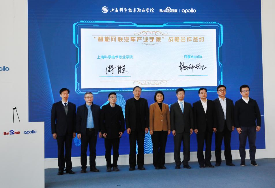 2.百度Apollo智能网联汽车产业学院科技学院与上海百度Apollo Park签署战略合作框架协议,正式成立启动“上海科学技术职业学院-百度Apollo智能网联汽车产业学院”。该产业学院基于5个中心(智能网联汽车教学研究中心,智能网联汽车实践教学与应用示范中心,智能网联汽车创新创业孵化中心,智能网联汽车公共科技服务中心,智能网联汽车技能培训中心),创建上海嘉定区智能网联汽车技术教育培训-产业实践双引擎,致力于打造“立足嘉定、服务上海、联通长三角,辐射全国”的“产、学、研、用”一体化示范基地。
