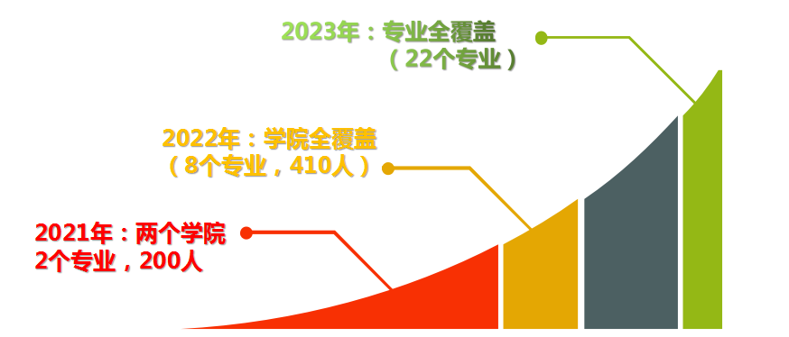 3.发挥资源的协同效应,打造中国特色现代学徒制的上海样板学习和借鉴德国“双元制”职业教育理念,以中国和德国政府合作的“中德先进职业教育项目”在科技学院落地建设为契机,将德国先进职业教育理念与中国特色现代学徒制有机结合,积极推进适应中国国情的中国特色现代学徒制人才培养模式改革,开展“双主体、双身份、双场所、双课程、双育人”工学结合的“五双”人才培养模式改革,开展“招生即招工”“订单班”以及“1+X”职业技能证书试点,重构各专业课程体系,努力打造适应世界级超级大都市的中国特色现代学徒制的上海样板。2022年在第一批试点的基础上,实现现代学徒制试点专业四个二级学院的全覆盖,2023力争全面完成现代学徒制试点改革。