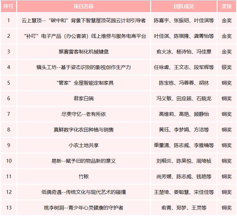 近年来,在学校领导的高度重视下,我校不断深化高职院校创新创业教育改革、加强创新创业人才培养,积极建设创新创业教育实践基地,充分整合校内外实践资源,重点开展大学生创新创业训练、培育、孵化创新创业项目。今年我校参加第八届“互联网+”大学生创新创业大赛4220人次,1328个项目成功参赛,参赛团队和指导教师克服疫情影响,反复钻研,不断打磨,经过市级初赛、复赛和决赛的层层选拔最终参赛项目《云上慧顶--“碳中和”背景下智慧屋顶花园云计划引导者》、《补叮”电子产品(办公套装)线上维修与服务电商平台》、《猴赛雷客制化机械键盘》突出重围获得金奖。