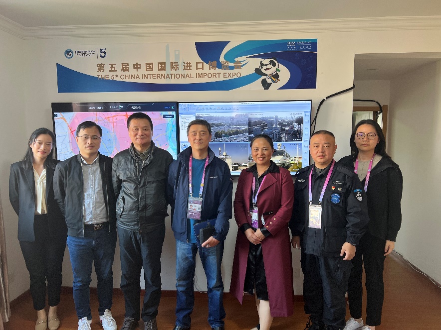 11月8日下午,我校通信与电子工程学院院长张平、副院长杨春雷,受上海市保安服务(集团)有限公司之邀,在第五届中国国际进口博览会市保服务集团无人机管制临时指挥所,参与了无人机安保技术交流活动。市保集团常务副总经理韩家红、人力资源部经理、保安学校负责人张雪娟、新世纪科技有限公司副总经理蒋旭洲等出席了本次技术交流活动。