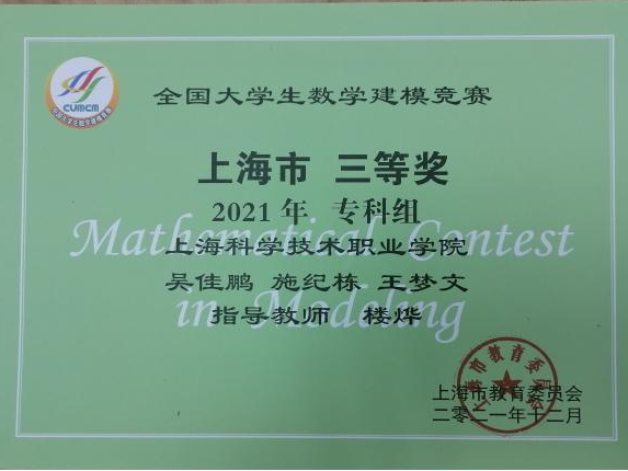 上海科学技术职业学院数学建模协会成立于2010年,致力于数学应用拓展、数学建模知识普及、各类高数、数模竞赛和科技实践项目。