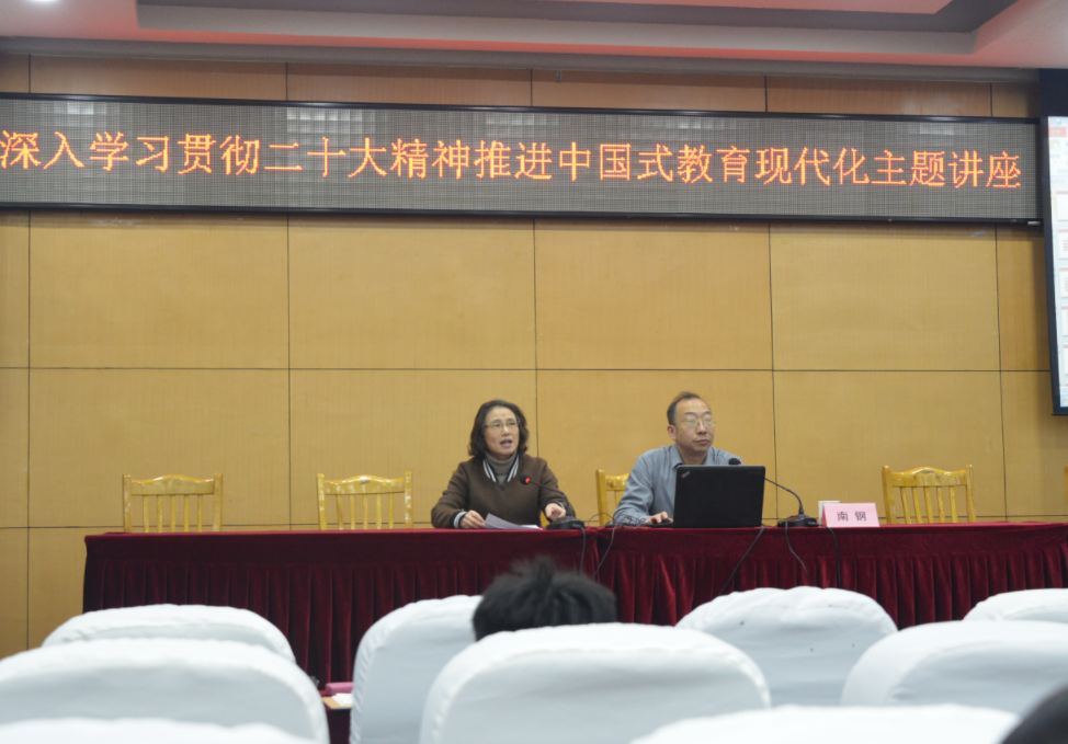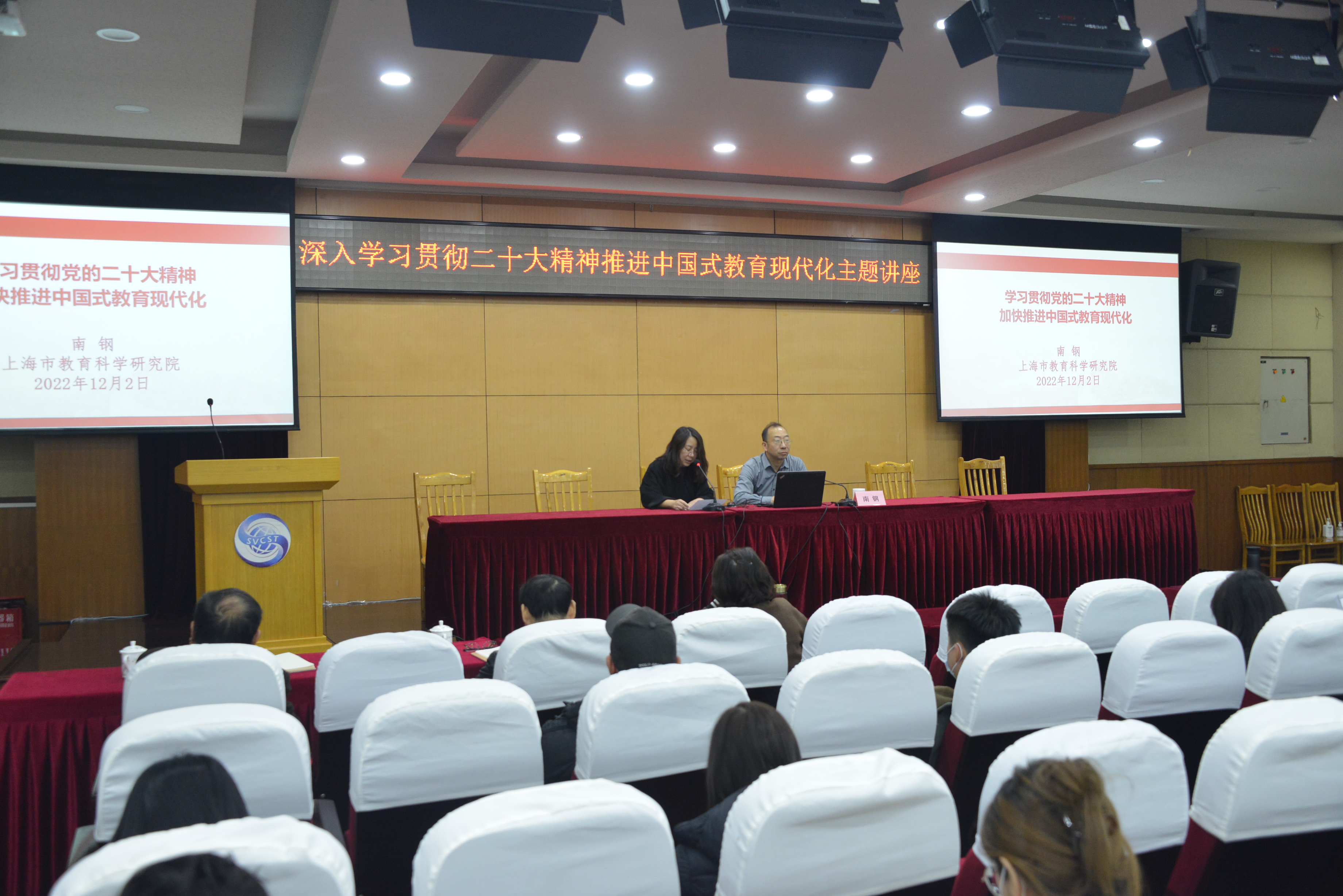 本次讲座邀请了上海市教育科学研究院《教育发展研究》和《中国高等教育评估》副编审南钢博士作了题为《深入学习贯彻二十大精神推进中国式教育现代化》专题报告。