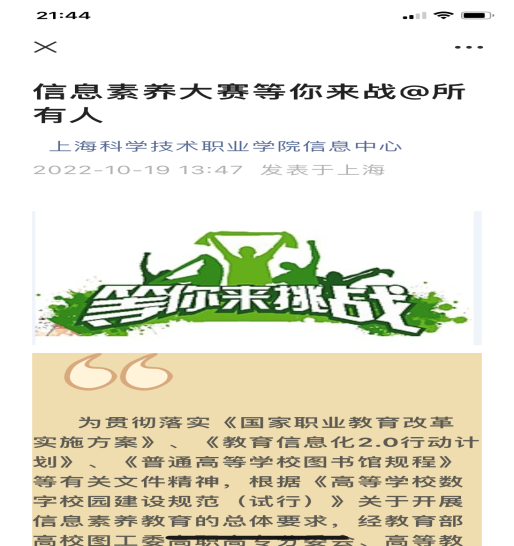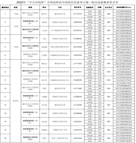 11月12日我校有4名同学参加“智信杯”上海高校信息素养挑战赛决赛,11月26日通信与电子工程学院杨方正、商贸管理学院刘欣怡同学参加第四届全国高职高专院校信息素养大赛决赛。