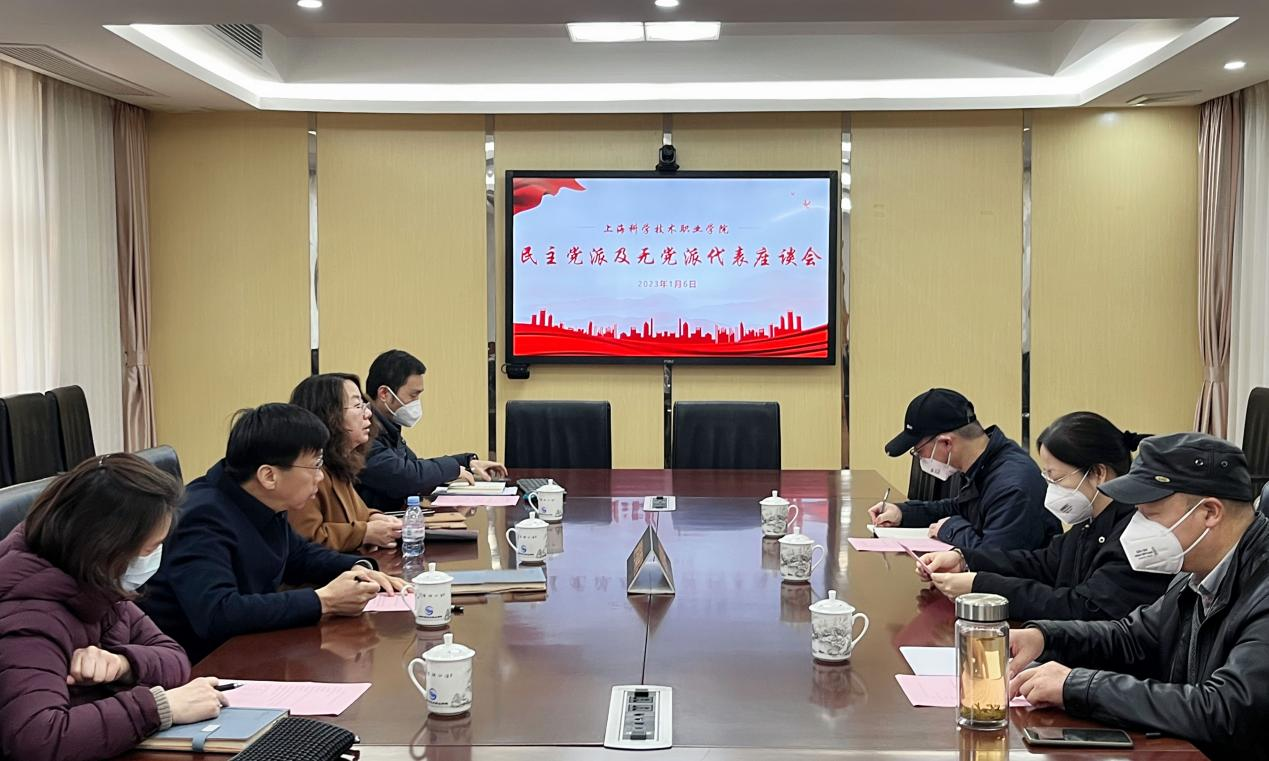 1月6日下午,学校在第一会议室召开民主党派及无党派人士代表座谈会。学校党委书记、院长周胜,党委副书记、常务副院长韩芳,纪委书记、副院长胡晓晖,各民主党派及无党派人士代表出席会议,会议由韩芳主持。