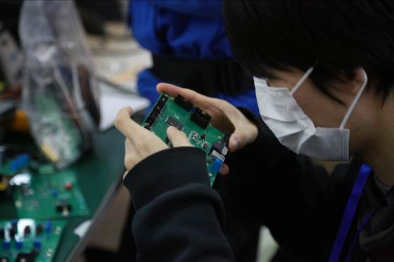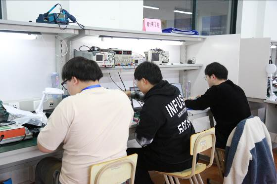 下午三点,比赛正式结束,各参赛队选手依次离开比赛场地前往评审等待室,裁判们依次对每个工位的作品进行评分。裁判们一丝不苟、严格评判,对作品的电子设计工艺、PCB焊接及装调工艺、任务与功能结果验证以及线路板排故四个模块依次严格评分。