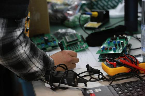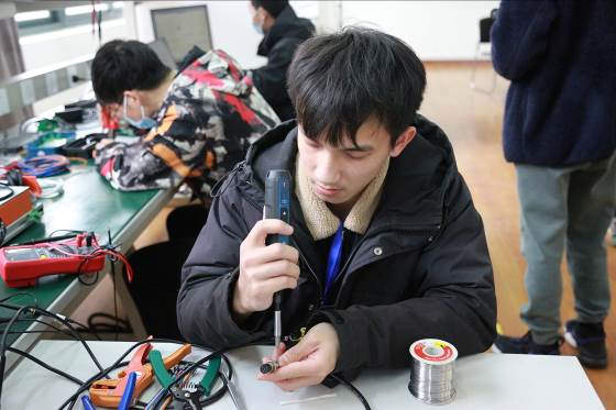 上午九点,由裁判长分发比赛试题,比赛正式开始。选手们按照竞赛试题要求,完成印刷线路板绘制、线路板焊接、电子产品整机安装接线、程序设计与调试、硬件故障诊断及维修等几个方面的任务,一个个精细的动作展示出了选手们娴熟的技能、过硬的功底和良好的精神面貌。